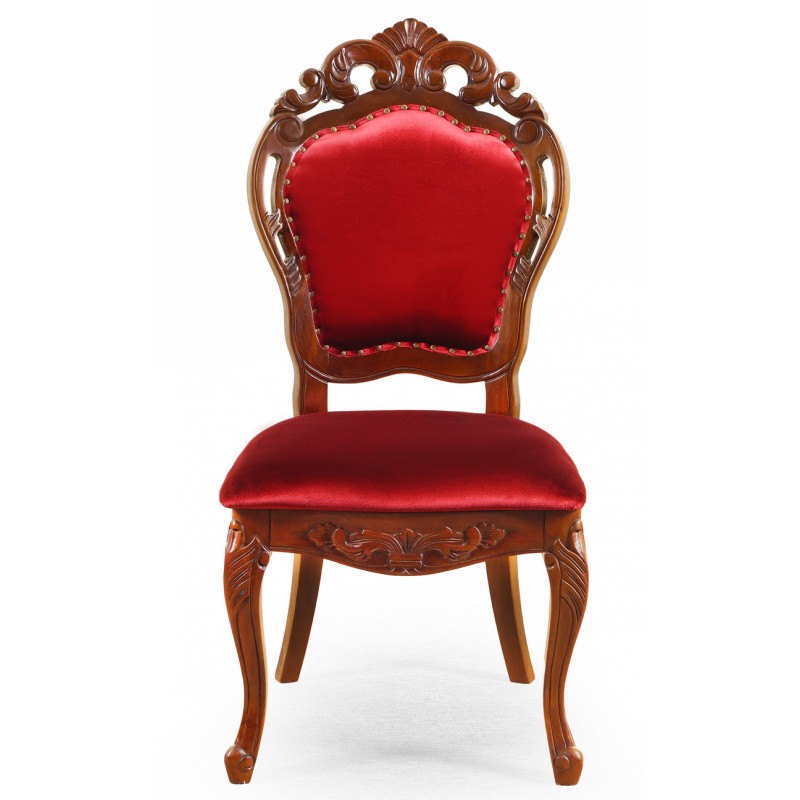 Gefertigt aus sorgfältig ausgewähltem, massivem Mahagoniholz höchster Qualität, besticht er durch seine kunstvollen Schnitzereien, die anmutige Linienführung und das perfekte Finish. Seine Form erinnert an höfische Möbeltraditionen und verleiht jedem Raum eine Atmosphäre von Luxus und zeitloser Schönheit.