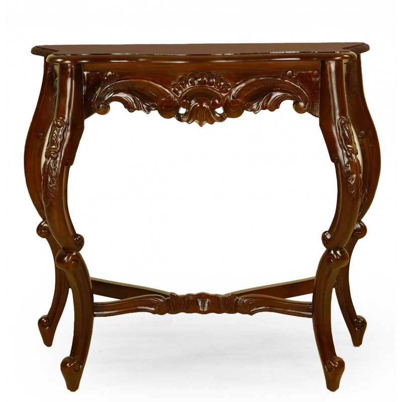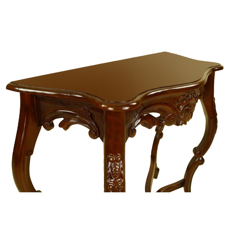 Mebel zrobiony jest z wyselekcjonowanego litego drewna mahoniowego najwyższej jakości. Model ten charakteryzuje się starannymi, pracochłonnymi rzeźbieniami, wykonanymi z maksymalną dbałością o detale przez najlepszych rzemieślników.